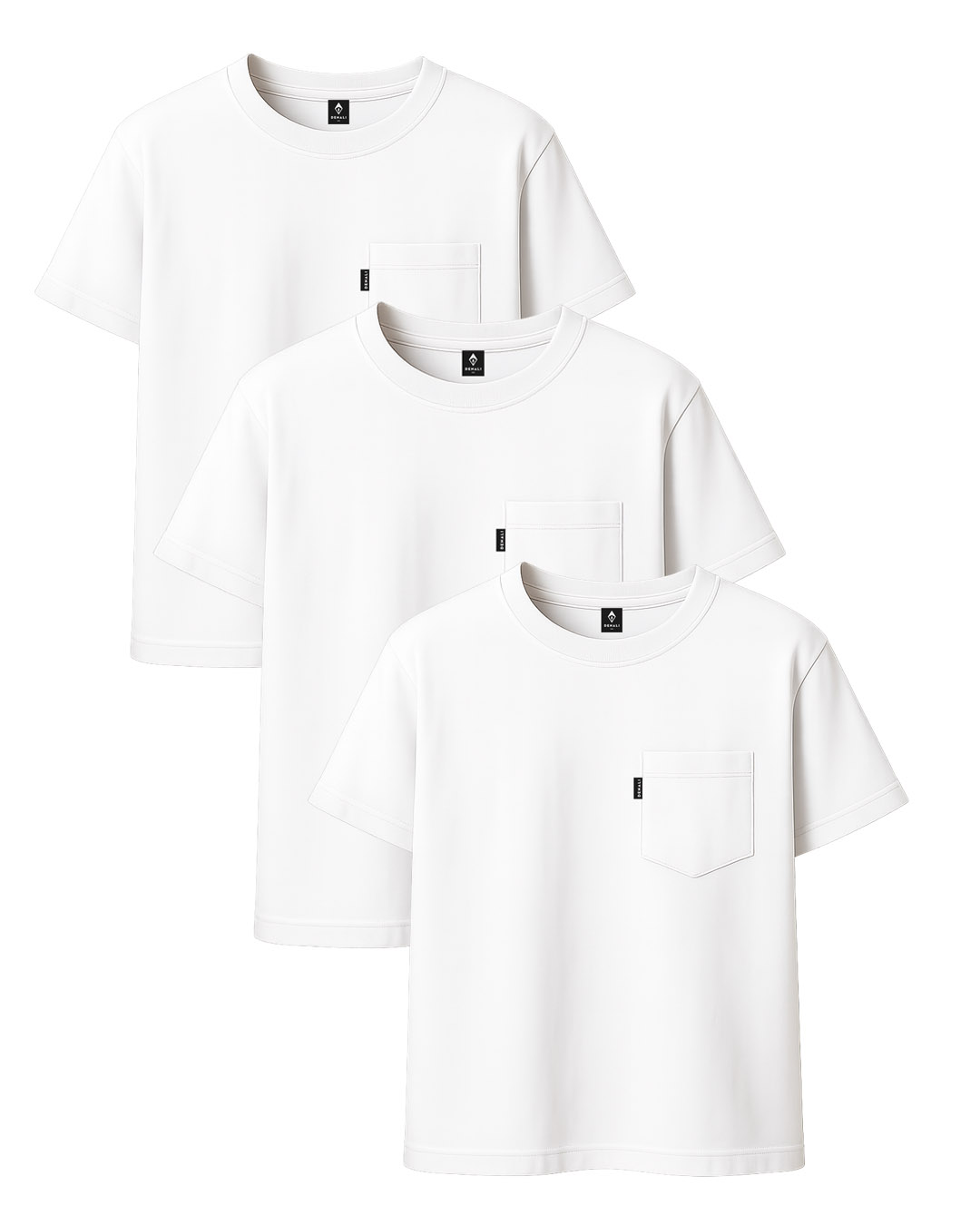 Remera lisas con bolsillo. 100% algodón y gramaje 230 gsm (tope de gama). Doble costura para que duren infinito y tela respirable para no transpirar. El pack trae tres remeras lisas.