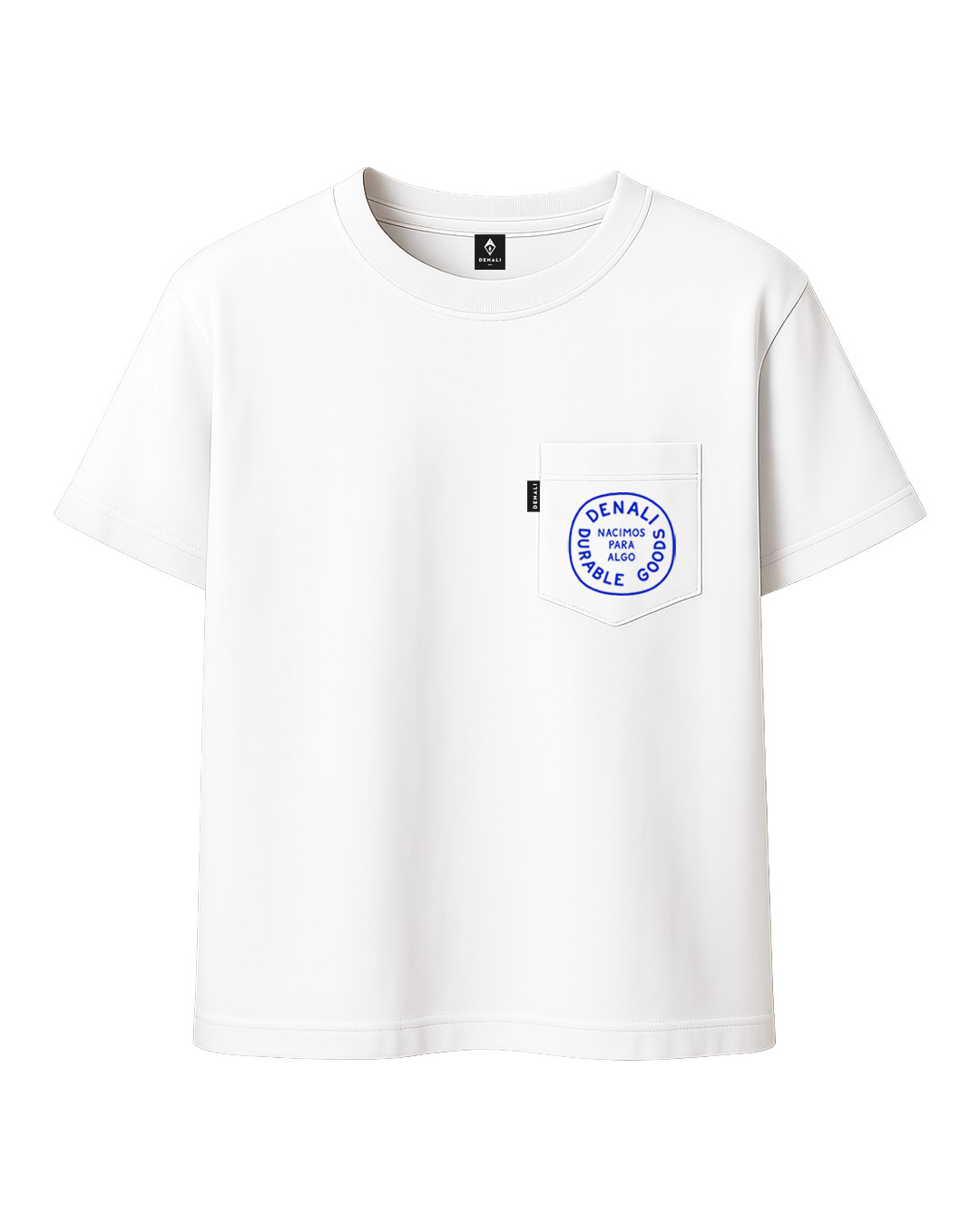 Remera estampada con bolsillo. 100% algodón y gramaje 230 gsm (tope de gama). Doble costura para que duren infinito y tela respirable para no transpirar.